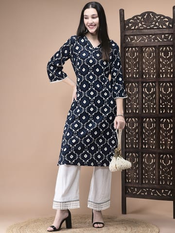 Women Cotton Blue Geometric Print Tunic