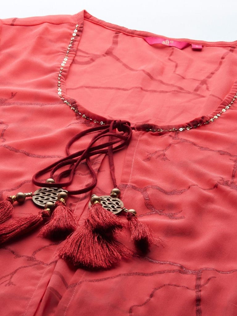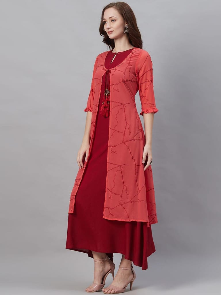 If you are someone who likes to wear glamorous outfits but keep them simple, then here is you’re a-line abstract dress with cape from Shree – She is Special. There are three variants of this gorgeous dress – brown beige, grey black and pink red. The dresses have a unique quality; they come with a cape. Get these three dresses and add them to your wardrobe today. The dresses have features like quarter length sleeves, a round neckline, and A-line silhouette. The dress is made of soft and comfortable Liva fabric, which is also easy to maintain and highly durable. Plus, it is an abstract printed dress, which makes your look chic and trendy. So, get this dress with cape from Shree today. 5110MPPink_Red