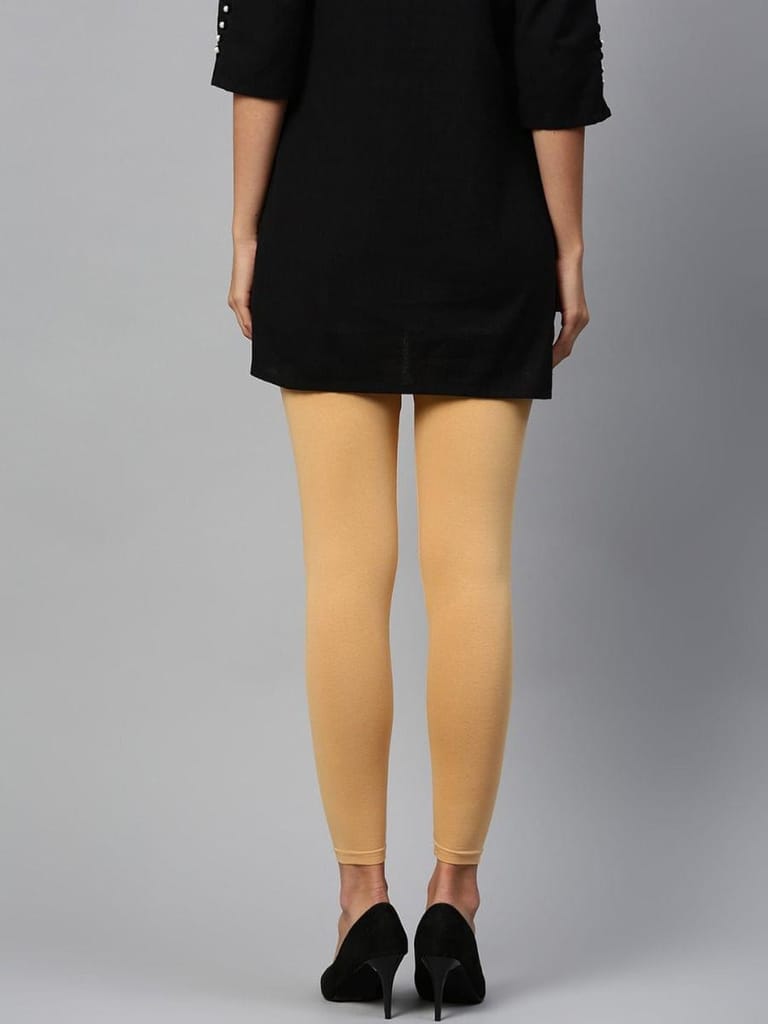 When it comes to bottom wear, the main priority is always comfort because if your bottom wear is uncomfortable you won’t feel any ease whenever you wear a garment. So, wait no more and get this beautiful beige colored solid ankle length leggings from Shree Dubai. These leggings come in many different colors but beige color goes with most bright colored kurtas. So, it’s best to get these leggings to pair up with your beautiful kurtas or kurtis. These ankle length leggings are made of liva fabric, which is stretchable, soft and highly comfortable. So, shop now. SHRLEG01BEIGE-FreeSize