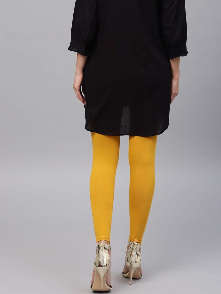 When it comes to bottom wear, the main priority is always comfort because if your bottom wear is uncomfortable you won’t feel any ease whenever you wear a garment. So, wait no more and get this beautiful beige colored solid ankle length leggings from Shree Dubai. These leggings come in many different colors but beige color goes with most bright colored kurtas. So, it’s best to get these leggings to pair up with your beautiful kurtas or kurtis. These ankle length leggings are made of liva fabric, which is stretchable, soft and highly comfortable. So, shop now. SHRLEG01MUSTARD-FreeSize