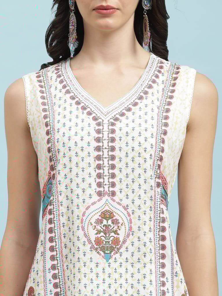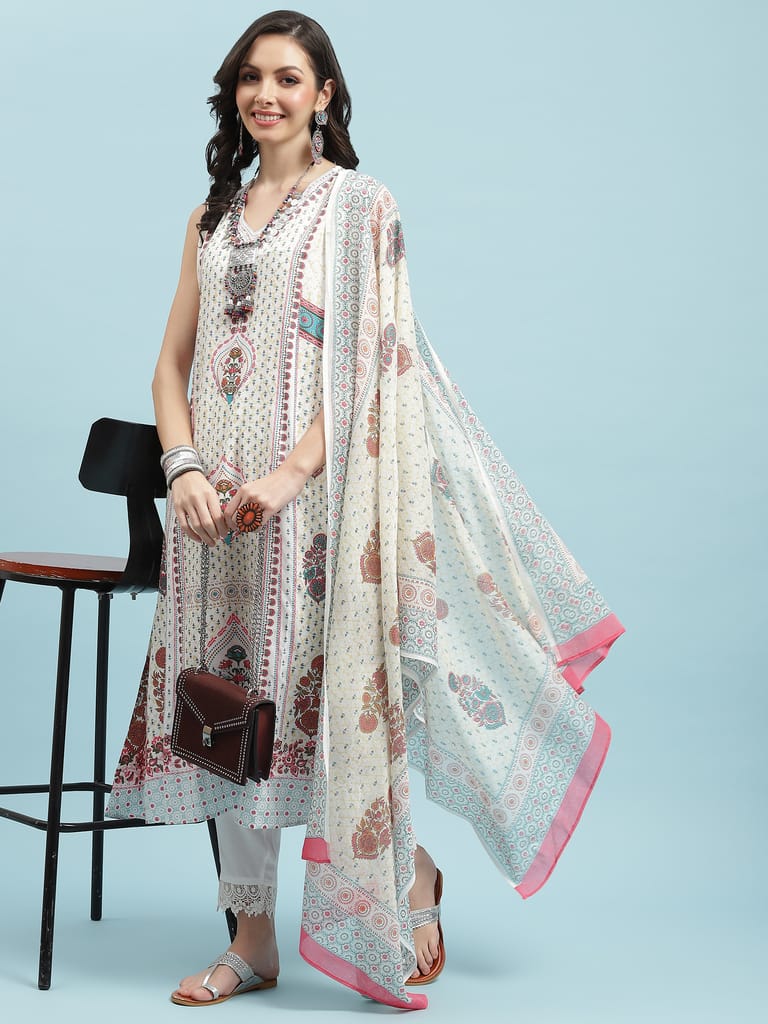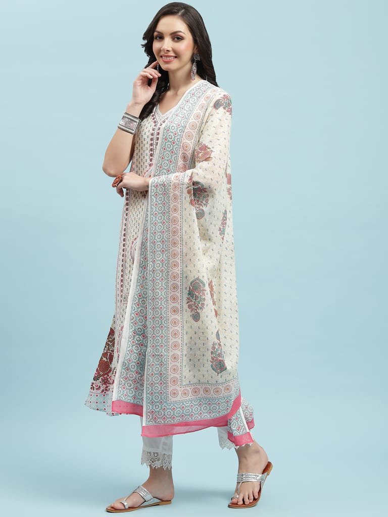 10378WHITE-XXLWhite Ornamental Printed Kurta Trouser Dupatta