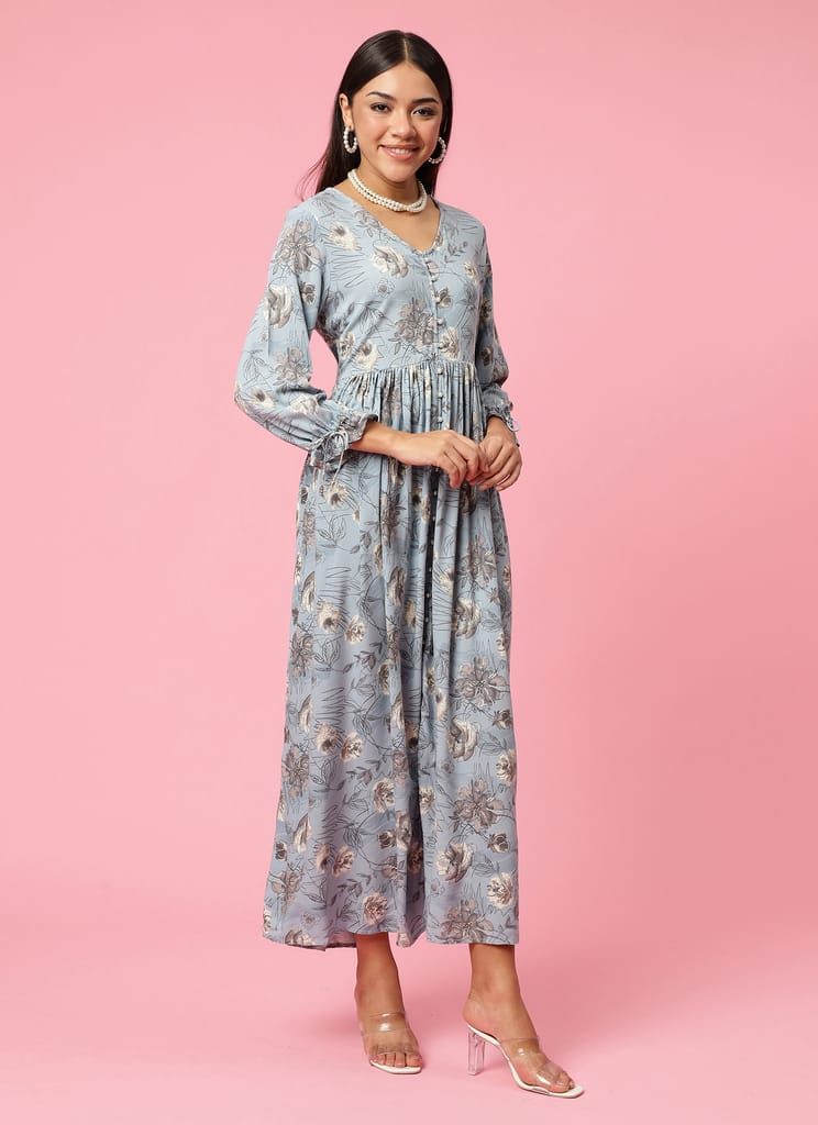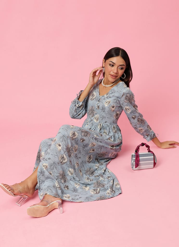 Women Blue Floral Print Dress