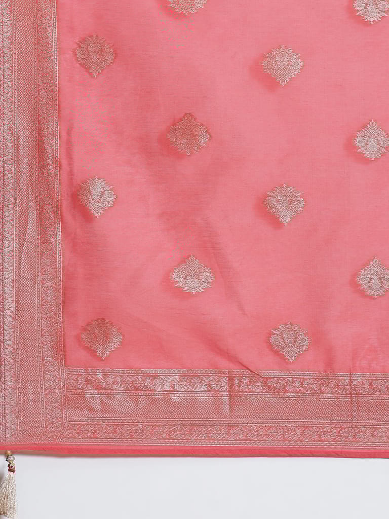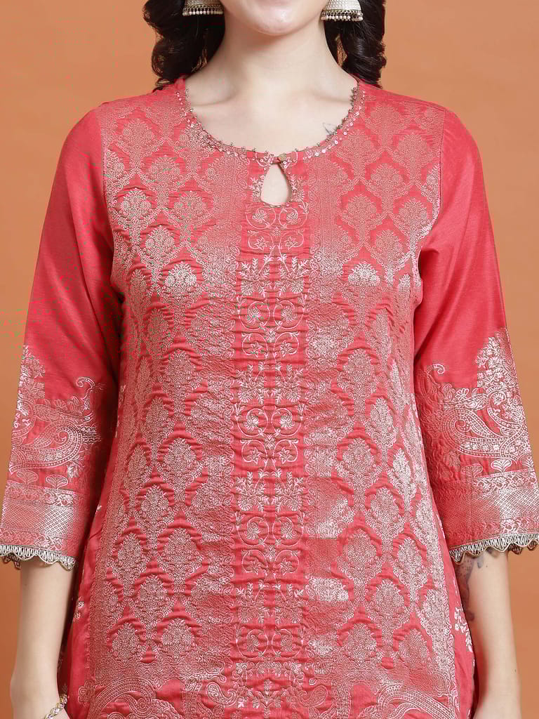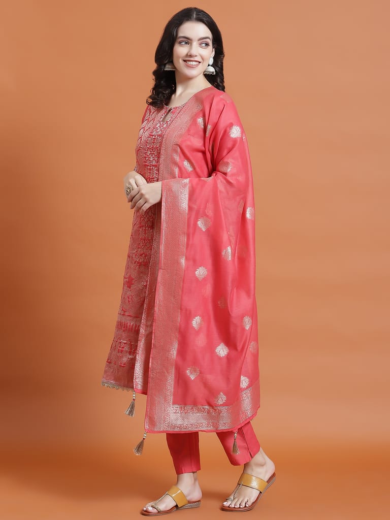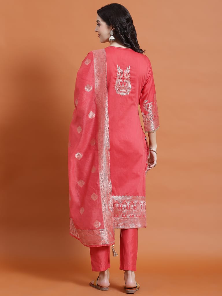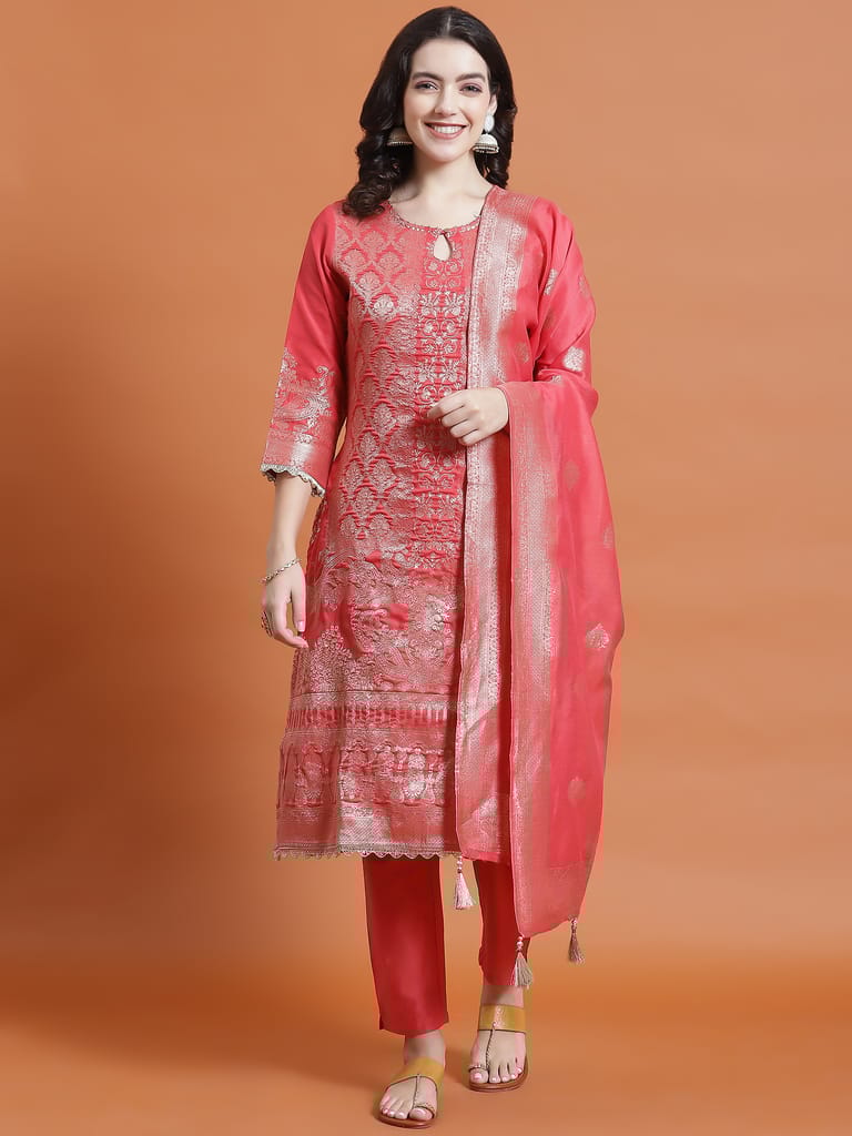 Women Coral Printed Kurta Trouser Dupatta