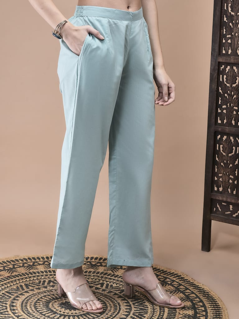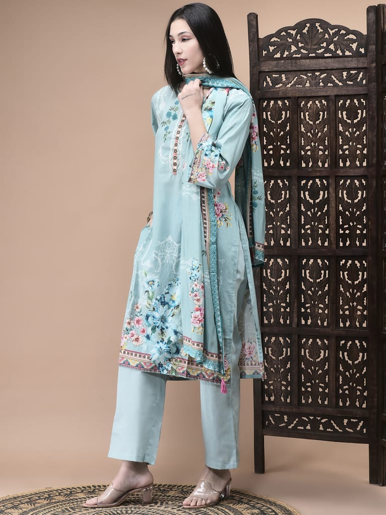 Women Cotton Blue Floral Print Kurta Comfort Pant Dupatta