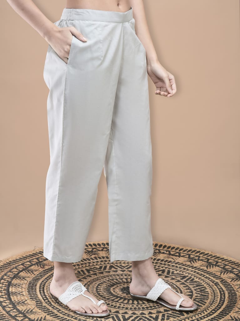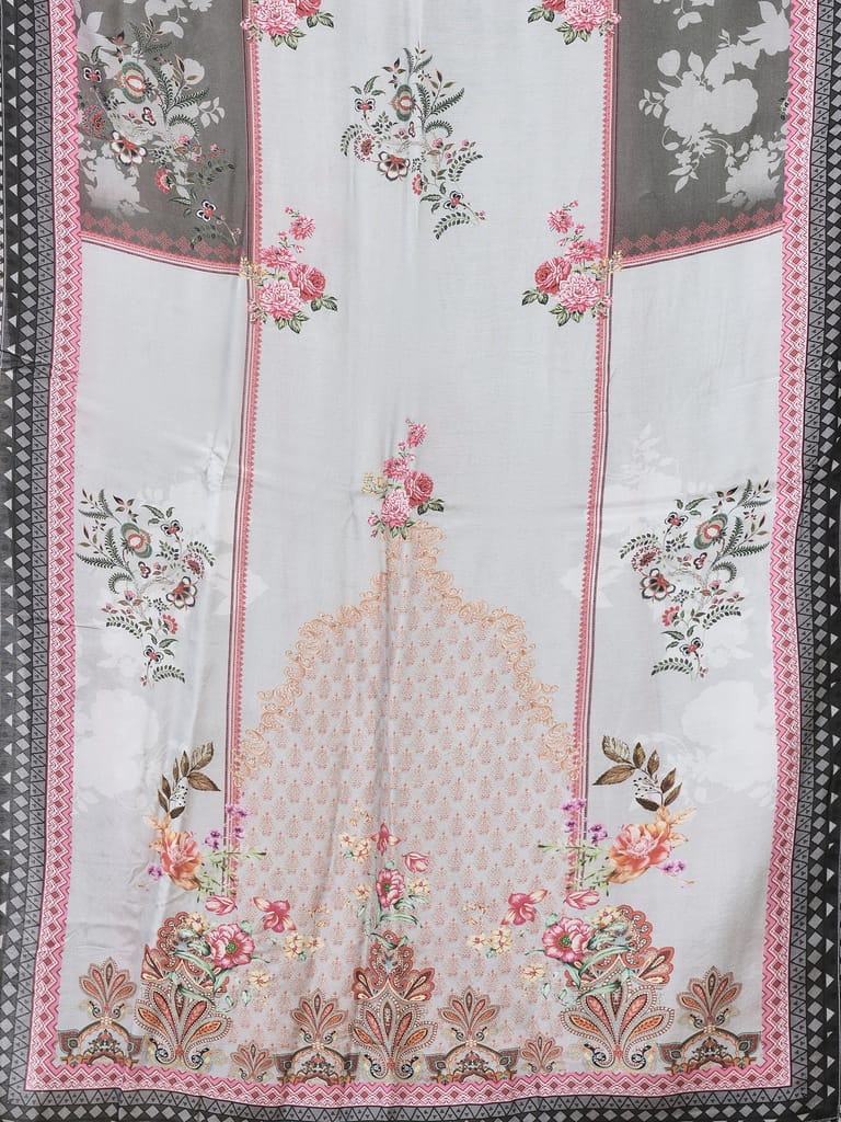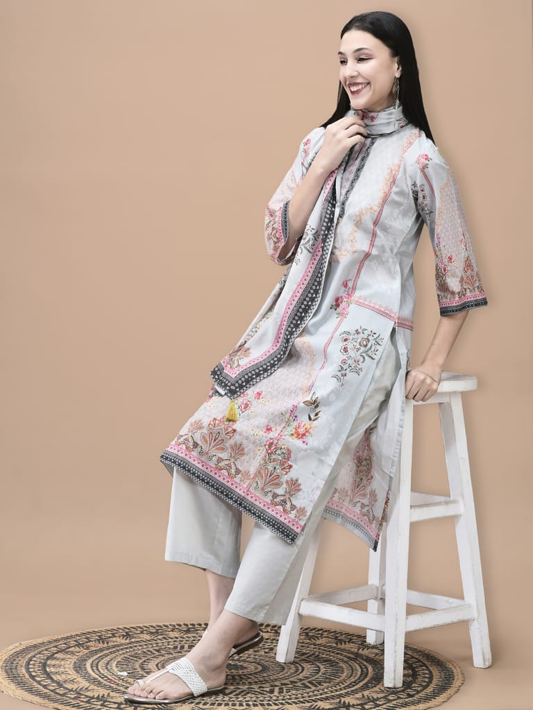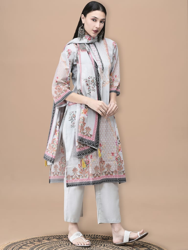 Women Cotton Grey Floral Print Kurta Comfort Pant Dupatta