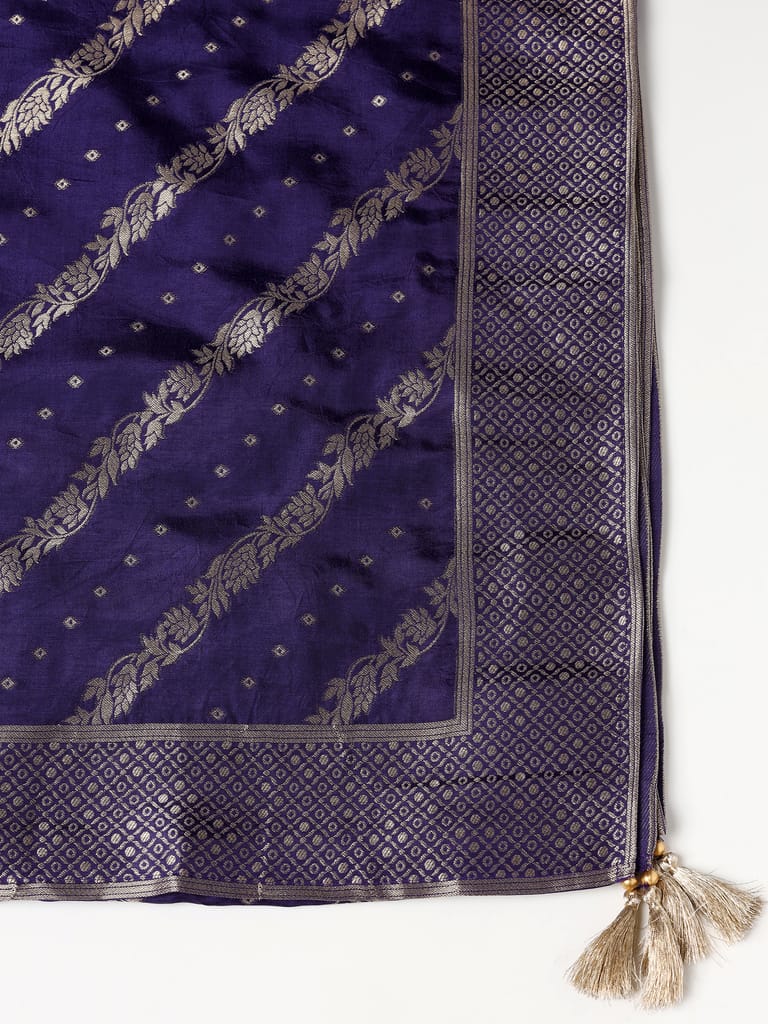 Women Dola Silk Jacquard Purple Kurta Comfort Pant Dupatta