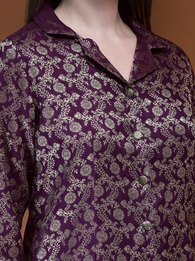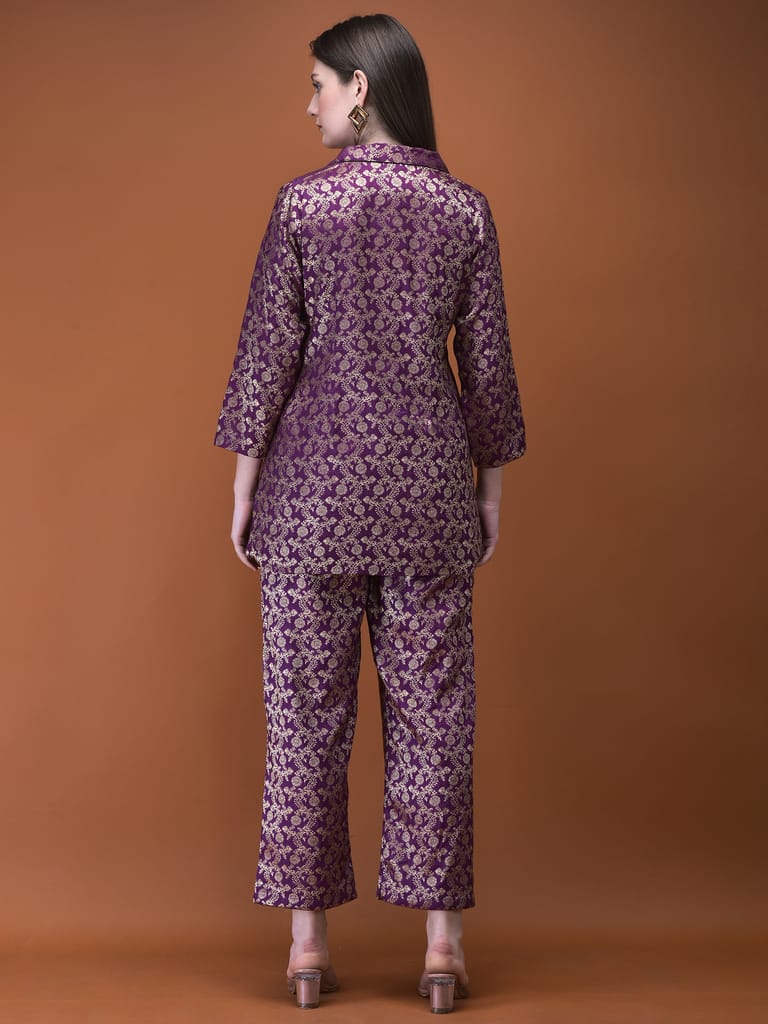 Women Jacquard Purple Woven Co-Ord Set