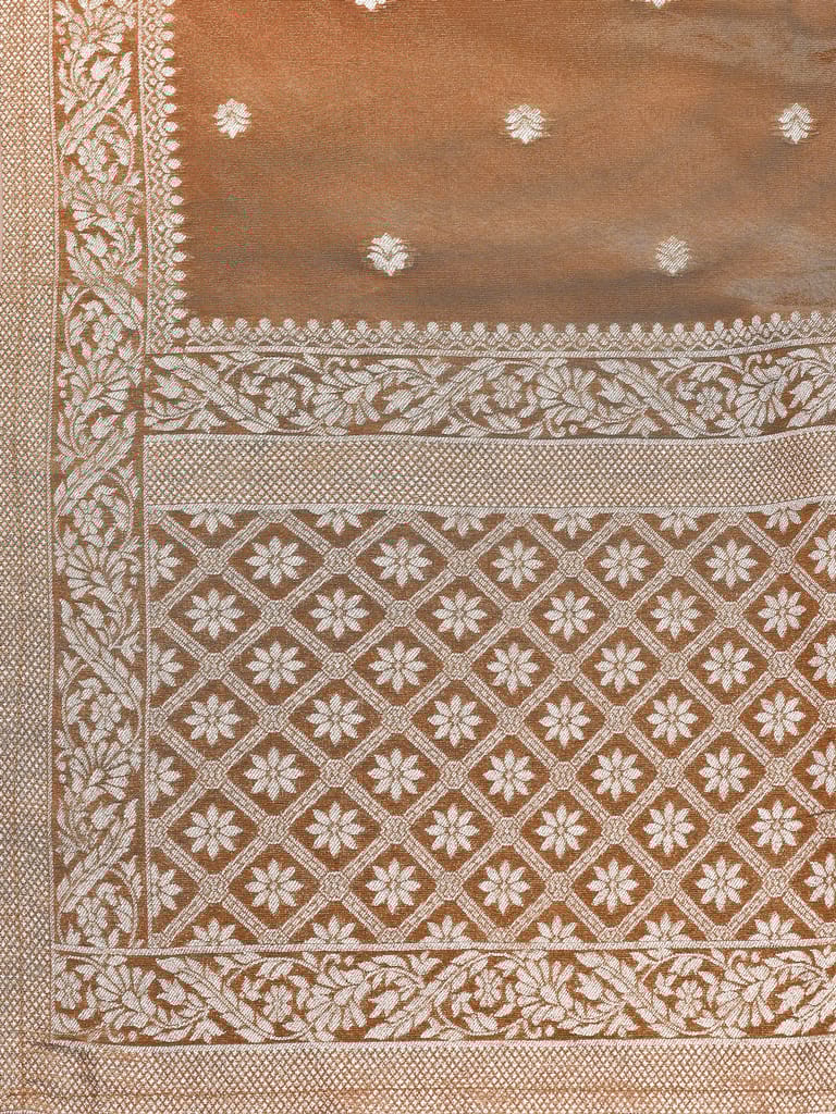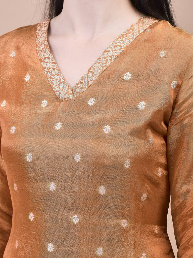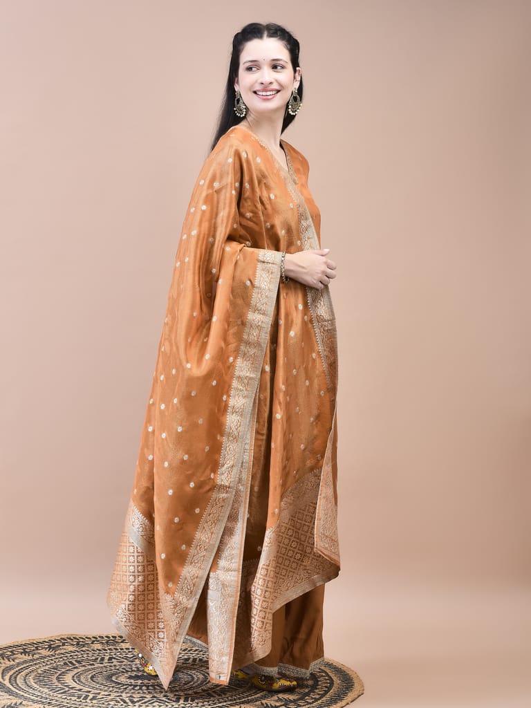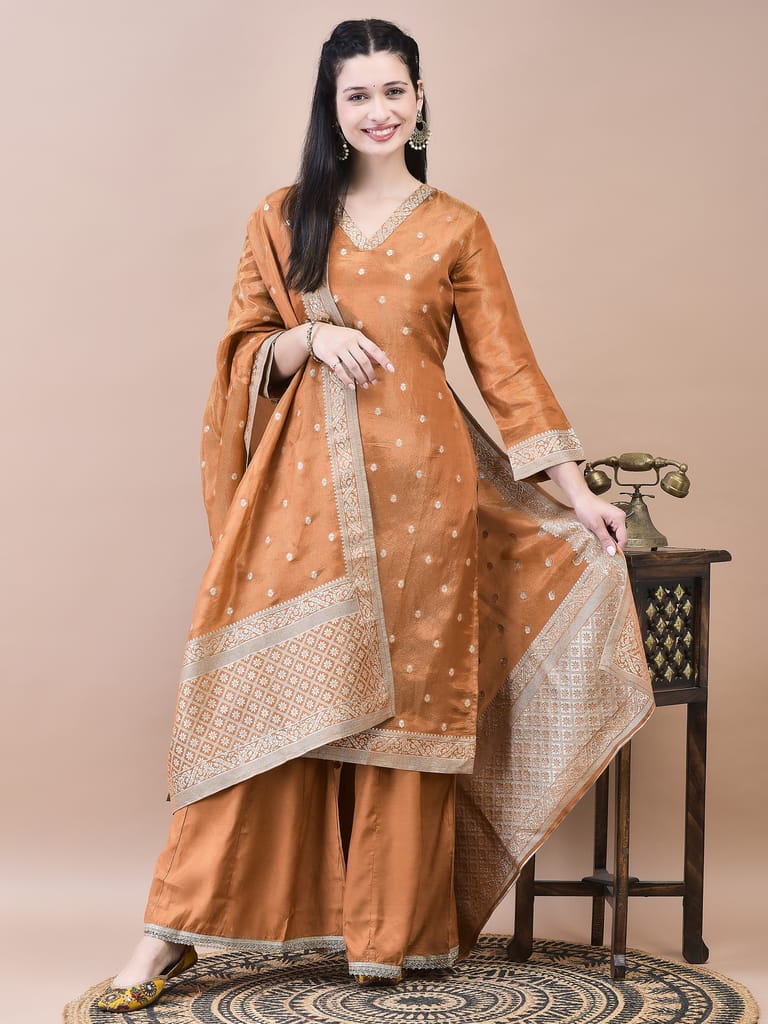 Women Jacquard Rust Solid Kurta Sharara Dupatta