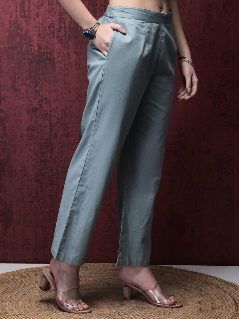 Women Linen Grey Solid Co-Ord Set