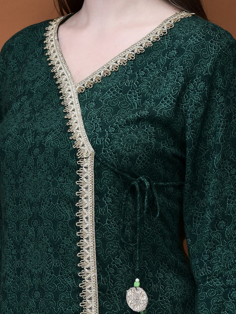 Women Liva (Rayon) Green Floral Print Kurta With Split Pant