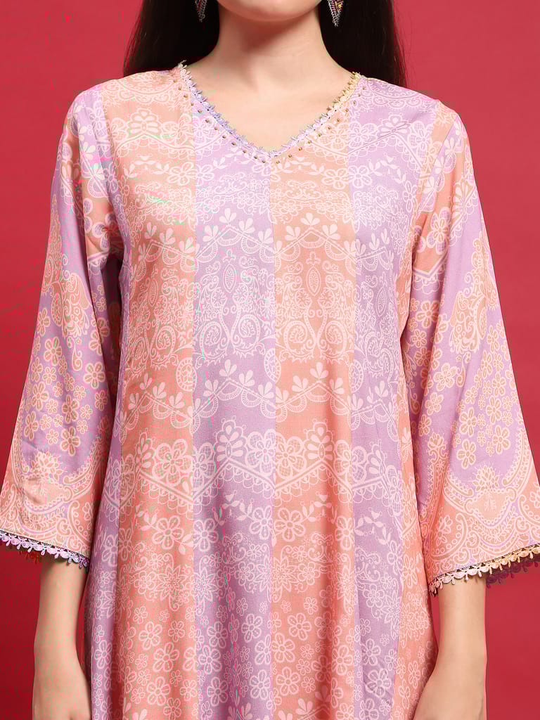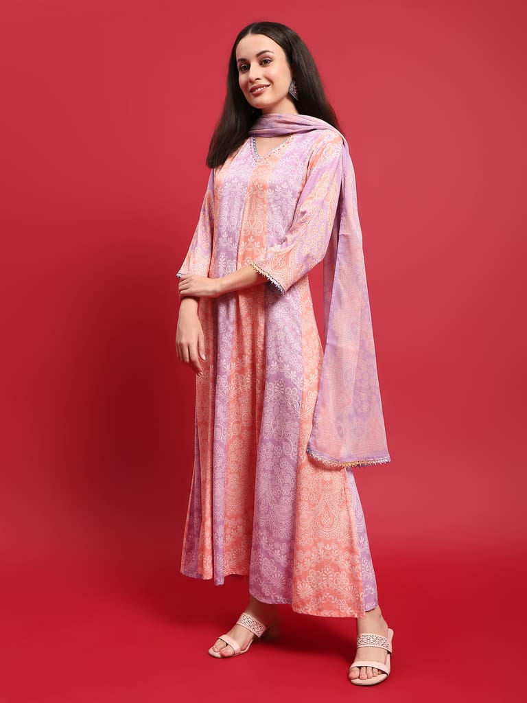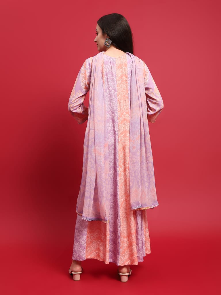 Women Liva Rayon Lilac Floral Print Dress With Dupatta
