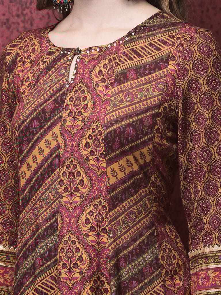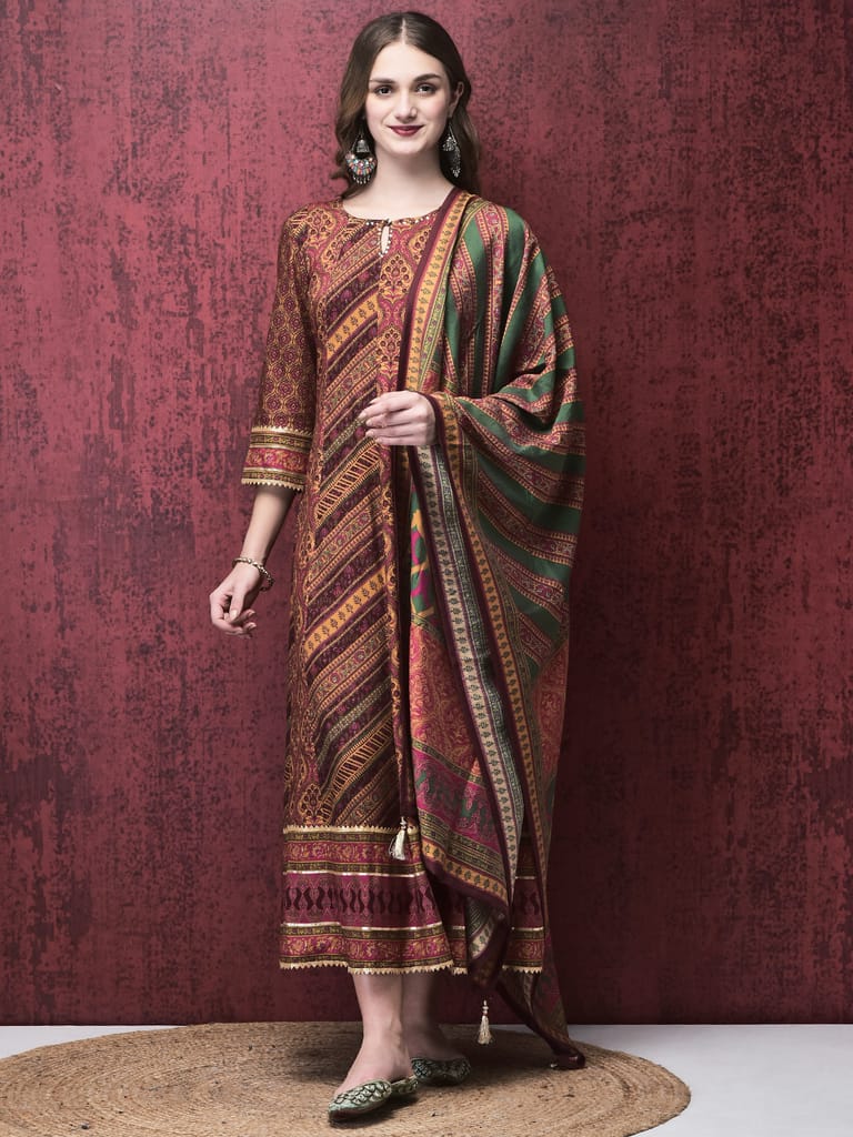 Women Liva (Rayon) Multicolor Mughal Print Dress With Dupatta