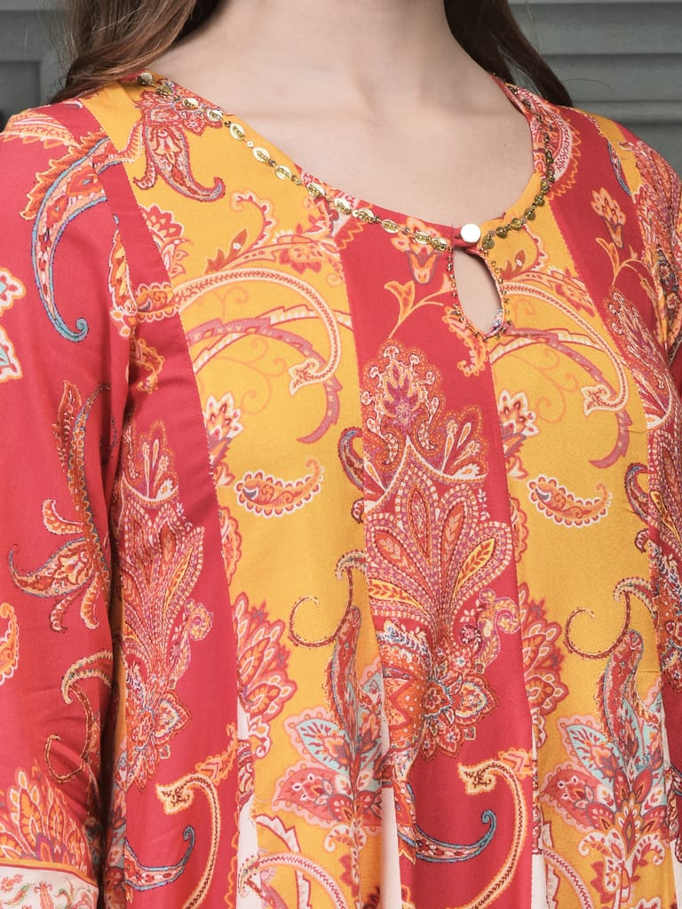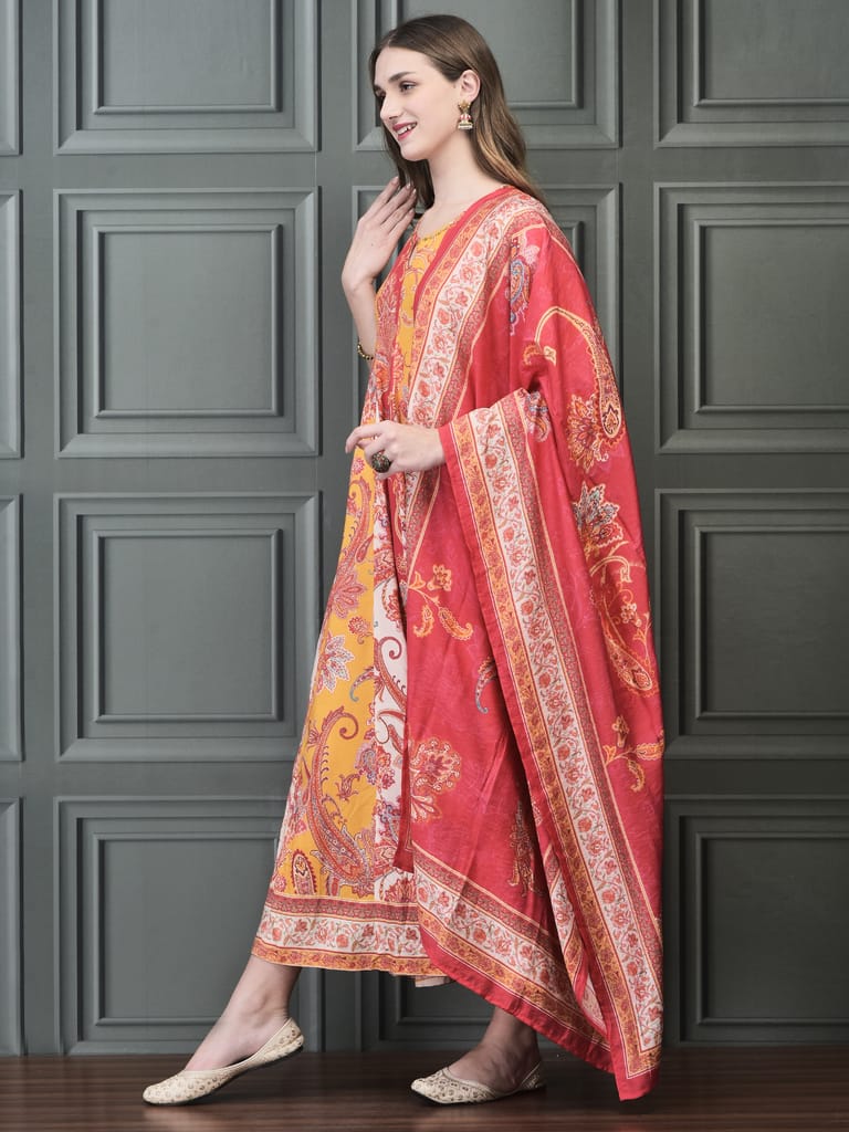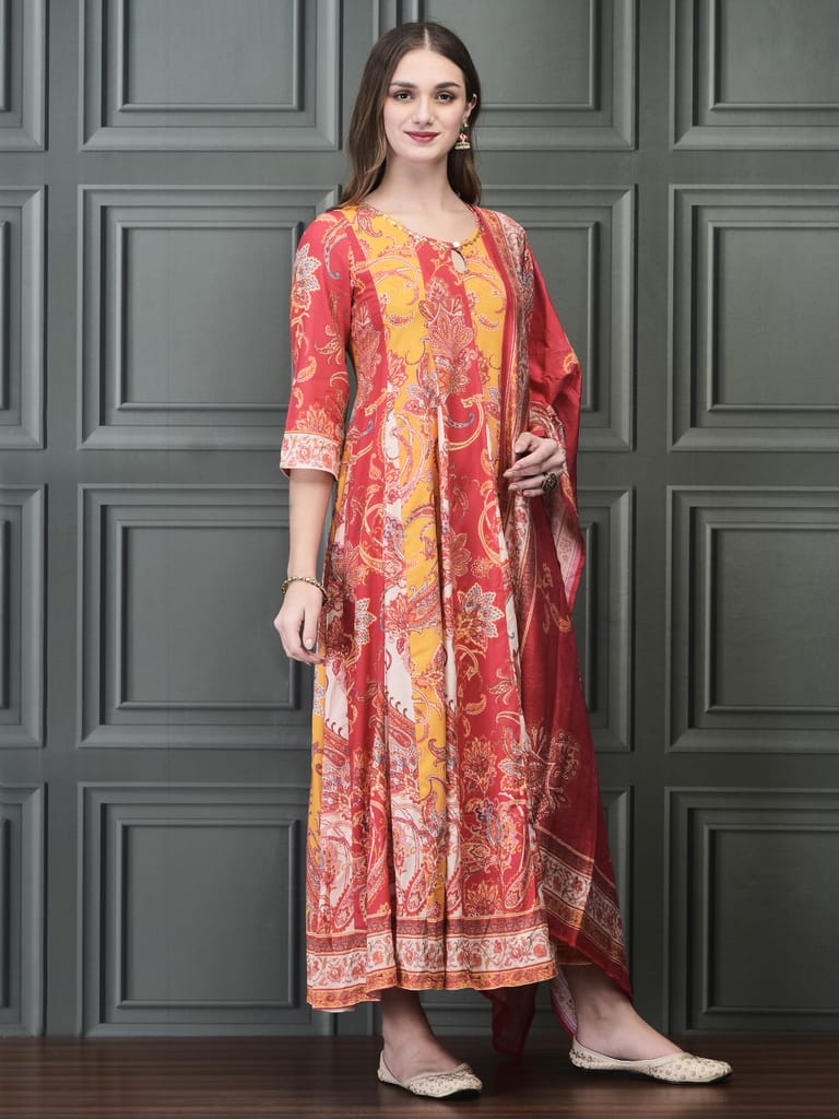 Women Liva (Rayon) Multicolor Paisley Print Dress With Dupatta