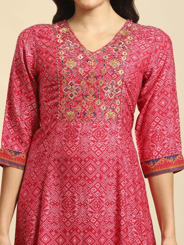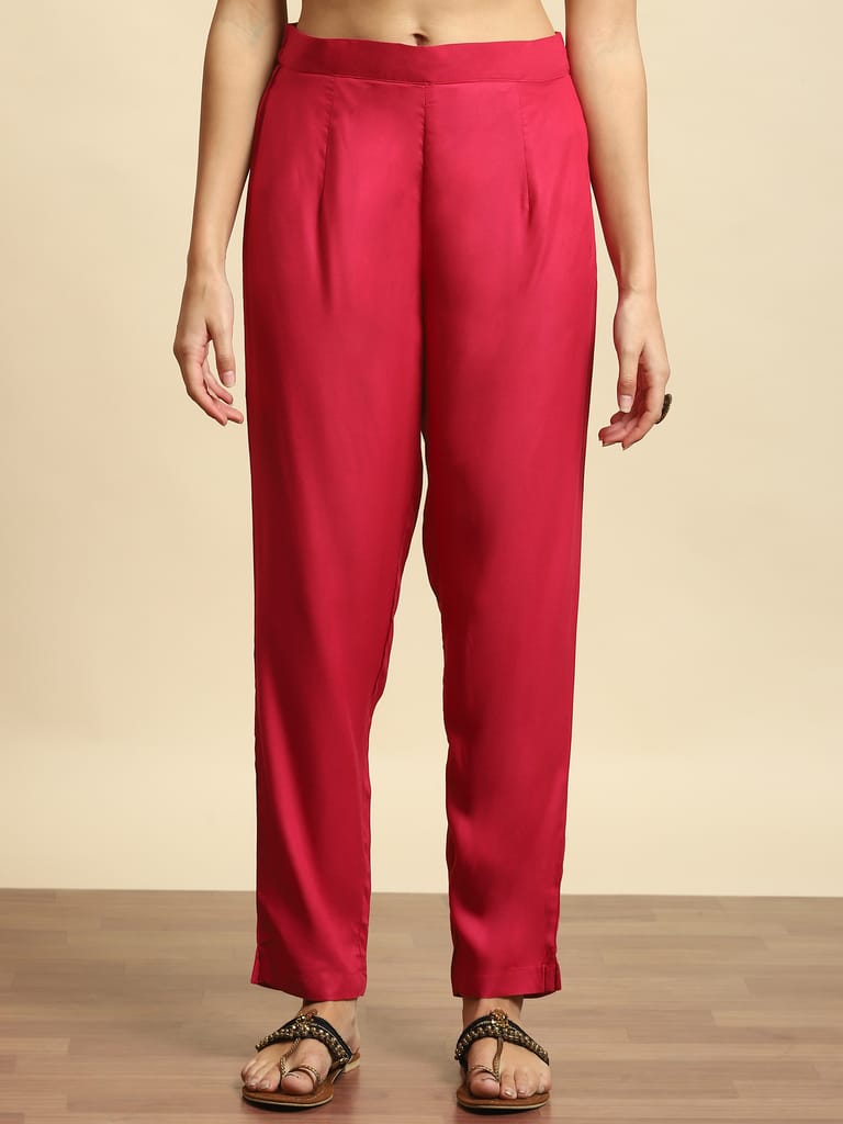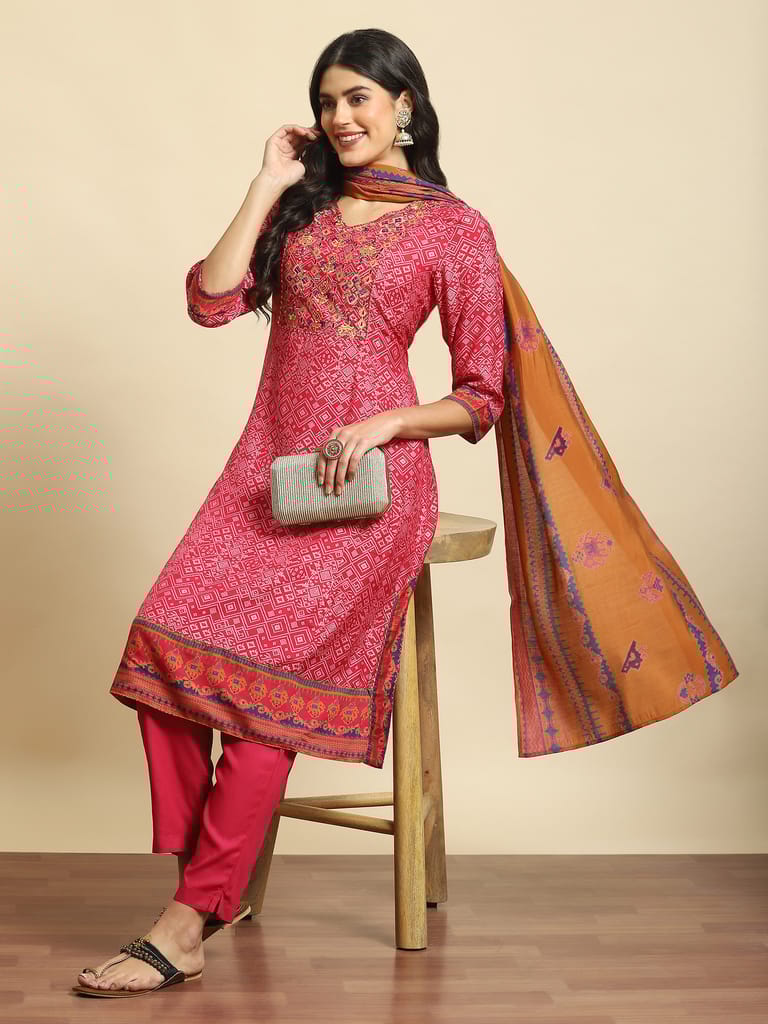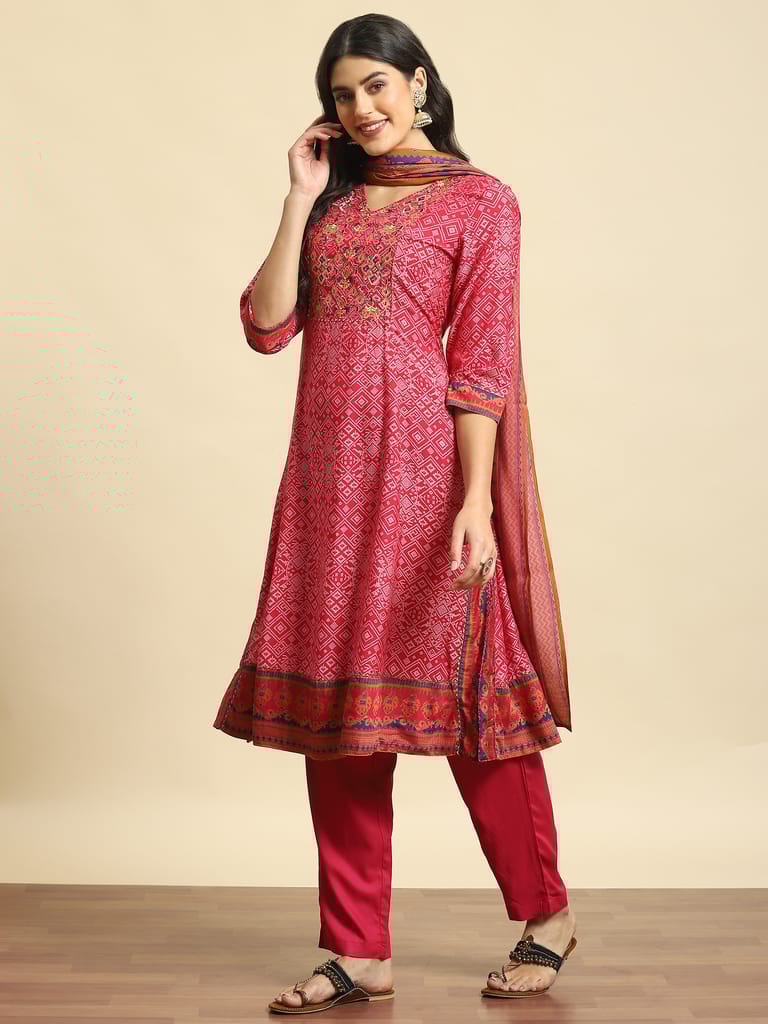 Women Magenta Embroidered Kurta Trouser Dupatta