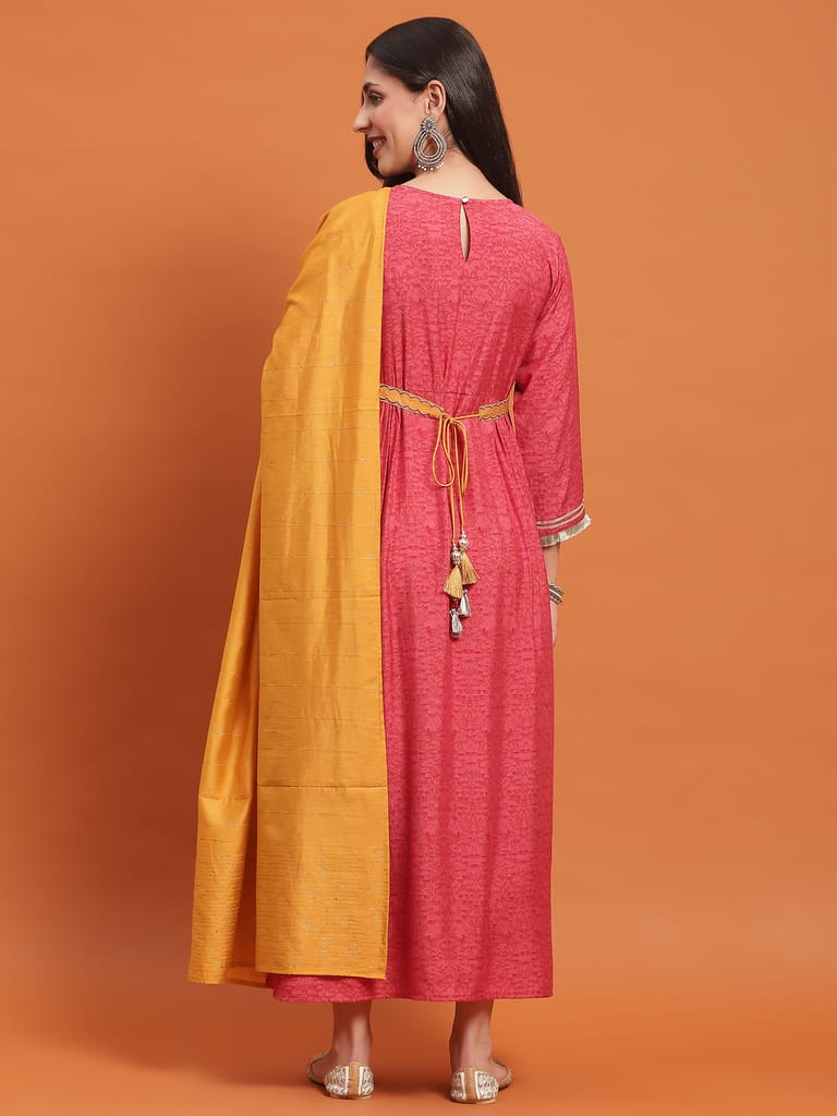 Women Muslin Pink Embroidered Dress With Dupatta