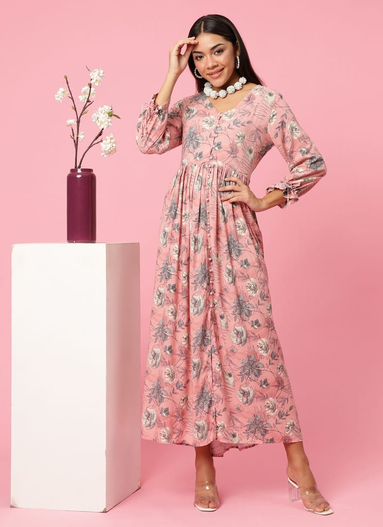 Women Pink Floral Print Dress