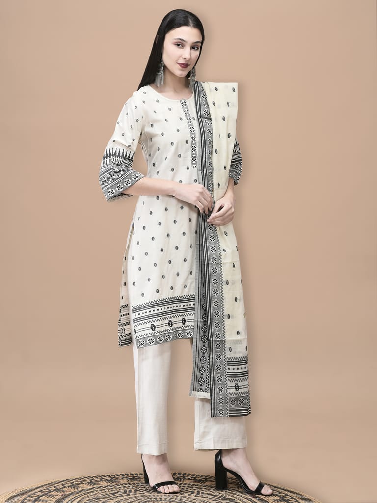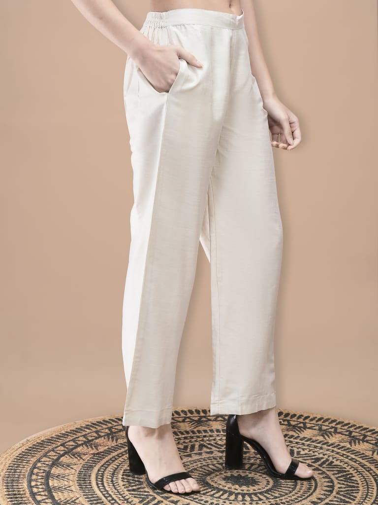 Women Silk Jacquard Beige Solid Kurta Comfort Pant Dupatta